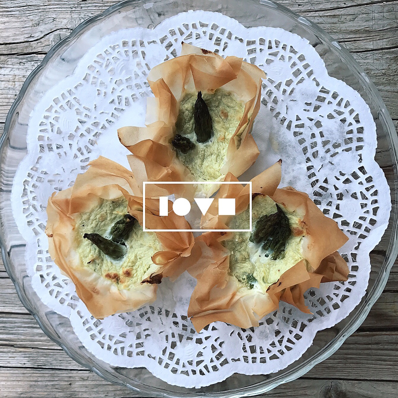 Farcire i cestini con il ripieno di ricotta e asparagi, guarnire con le punte messe da parte e infornare a 170º per 20′ circa.