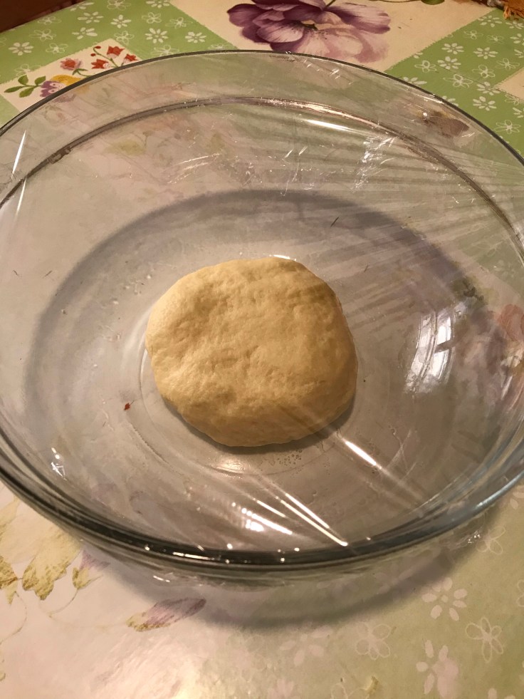 Impastare, formare una palla e riporla in una ciotola scaldata con dell’acqua calda. Coprire con la pellicola e lasciar riposare la pasta per 30′.