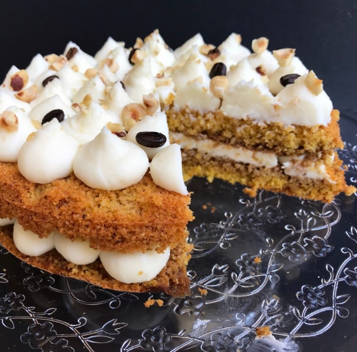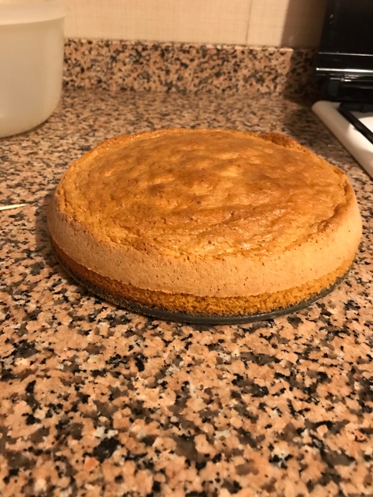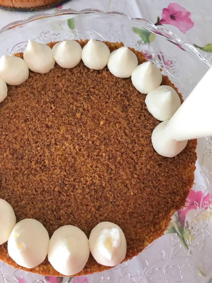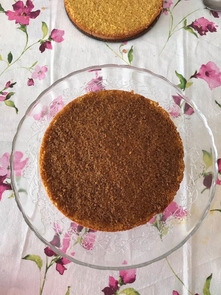 Una volta raffreddata, prendete la torta e tagliatela a metà. Bagnate con il caffè le due parti e posizionate la parte superiore della torta (quella con la ”crosticina”) sul piano/piatto che userete per servirla 🙂
