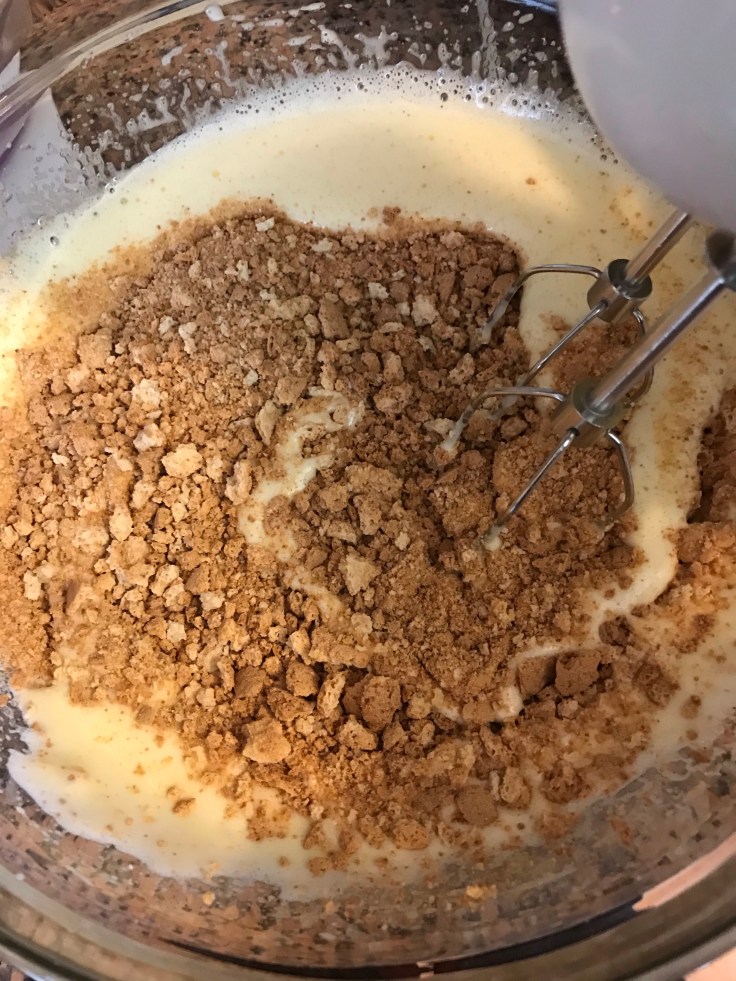 Sbriciolate gli amaretti (tenetene una manciata da parte da sbriciolare sopra) ed uniteli al composto.